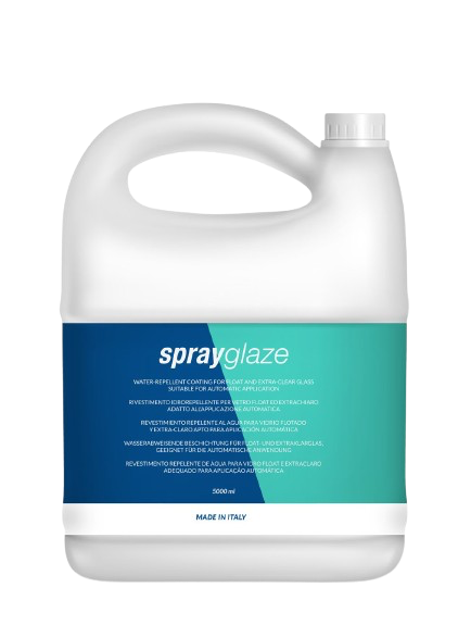 SPRAYGLAZE IS A WATER-REPELLENT PROTECTIVE TREATMENT FOR TRANSPARENT GLASS SPECIALLY DEVELOPED FOR AUTOMATED SPRAY APPLICATION. The product forms a homogeneous layer which binds stably to the glass surface and prevents the adhesion of dirt, limescale and impurities in the micro-porosity of the glass.